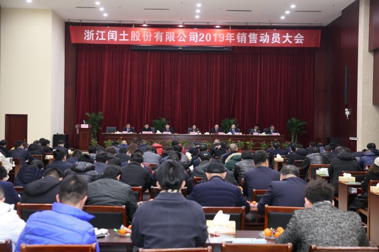 2月12日,閏土股份2019年銷售動員大會在閏土生態(tài)工業(yè)園隆重召開。阮靜波董事長攜公司高層領(lǐng)導(dǎo)出席會議。本次大會旨在對公司2018年的營銷工作進行了全面總結(jié),提出了2019年新的銷量目標(biāo),號召全體銷售工作人員勵精圖治、不斷進取奮斗,全面提升銷售團隊的戰(zhàn)斗力。